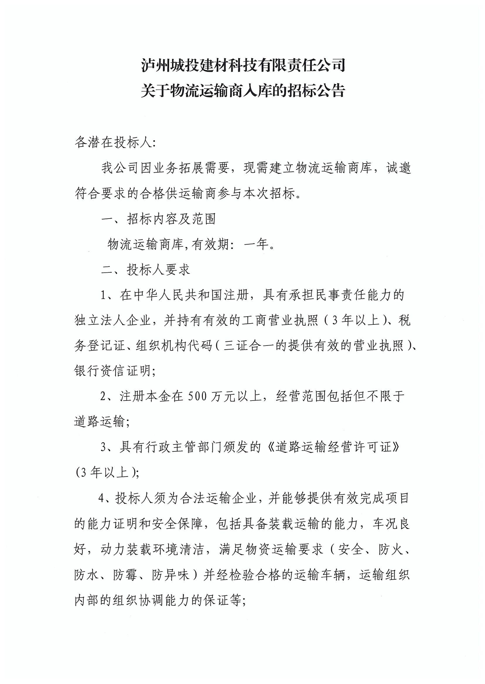 物流運輸商入庫的招標公告
